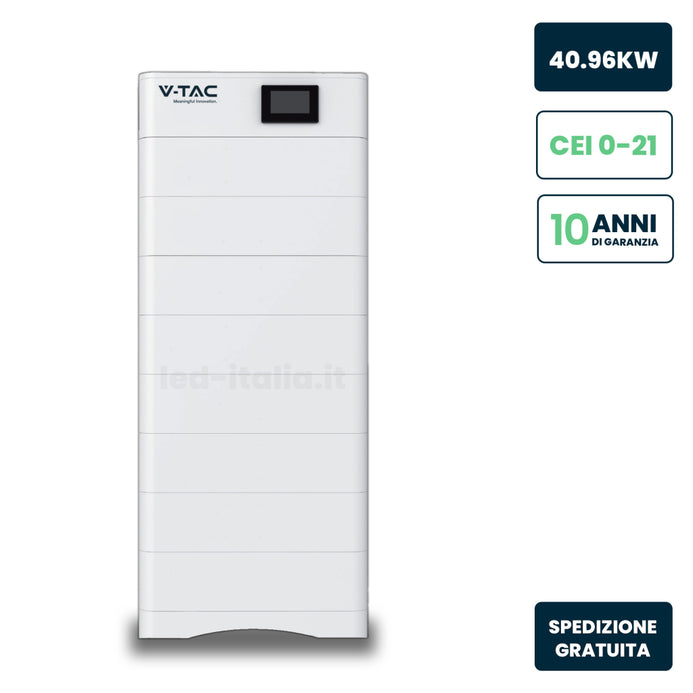 Kit 8 Moduli di Accumulo Impilabili Alta Tensione 40.96kWh LiFePO4 100Ah 409.6V con Base e Box di Controllo BMS Inclusi, CEI 0-21 Garanzia 10 Anni IP65