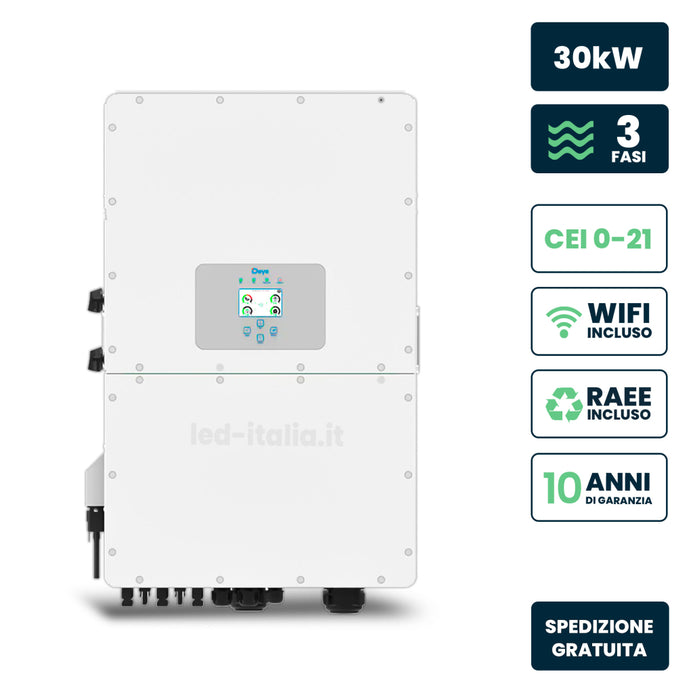 Inverter Fotovoltaico Alta Tensione Deye Trifase Ibrido On-Grid/Off-Grid 30kW, Triplo MPPT, CEI 0-21, Schermo LCD Touch, WiFi e TA Inclusi, Garanzia 10 Anni IP65