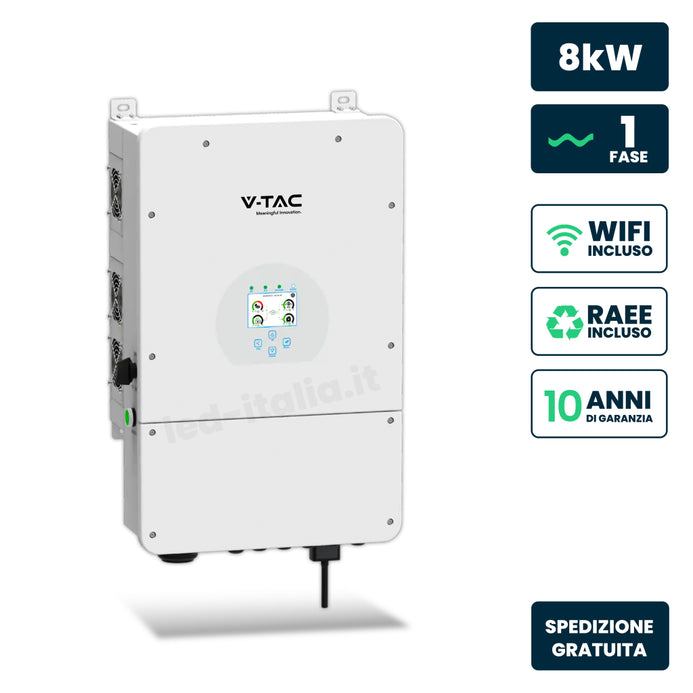 Inverter Fotovoltaico Deye Monofase Ibrido On-Grid/Off-Grid 8kW, Doppio MPPT, Senza CEI 0-21, Schermo LCD Touch, WiFi e TA Inclusi, Garanzia 10 Anni IP65