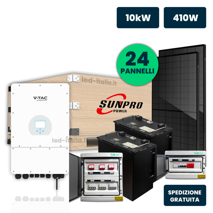 KIT Fotovoltaico Trifase 10kW con Inverter Ibrido, 24 Moduli TIER-1 410W (9.84kW) Full Black con Accumulo LFP 20kWh, Quadri DC 3-3 e AC 1-1 10kW