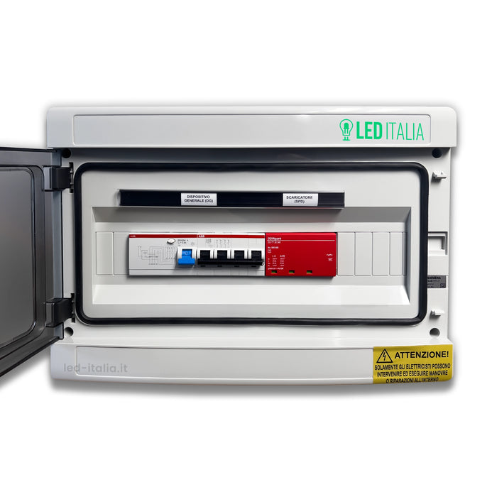 Quadro AC Trifase 10kW - 20A 400V Centralino IP65 8 Moduli versione con Interruttore Magnetotermico Differenziale + Scaricatore ABB / DEHN