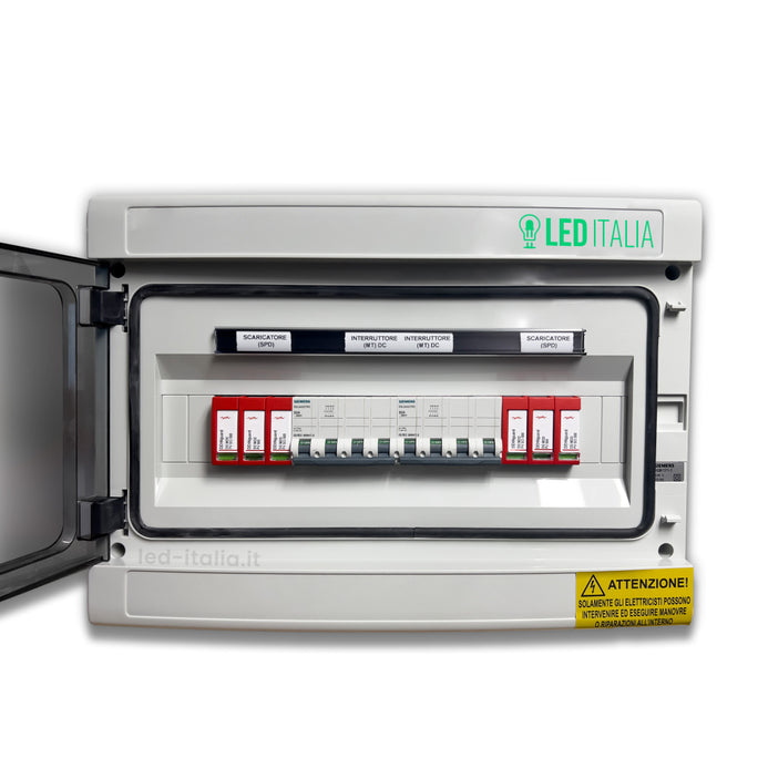 Quadro di Campo DC 2 Stringhe 2 MPPT 1000VDC 20A con Centralino IP65 12 Moduli versione con Interruttori Magnetotermici + Scaricatori Siemens / DEHN