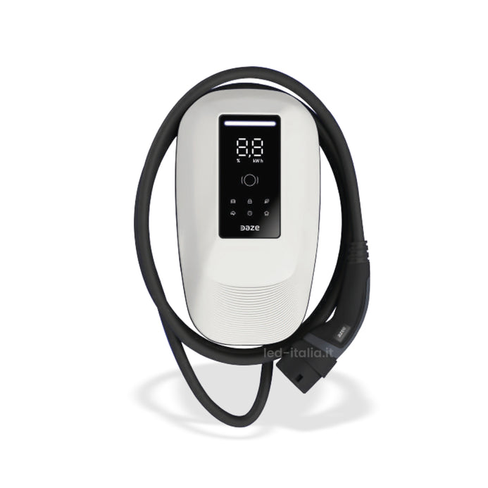 Stazione di Ricarica Dazebox Home T 22.2kW Trifase 32A, IP55 IK10, WiFi e Bluetooth, Wall Box Bianco con Schermo, 3 Tessere RFID Incluse, Cavo Tipo 2 Lunghezza 5m